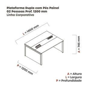 Mesa de Plataforma Dupla para 2 Pessoas Corporativa 140x120/2p Walnut/Preto - Marrom
