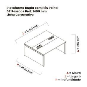 Mesa de Plataforma Dupla para 2 Pessoas Corporativa 160x140/2p Branco/Preto