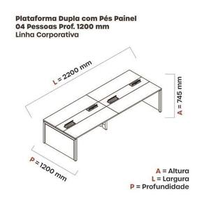 Mesa corporativa para 4 lugares com pé painel adequado para ambientes de coworking. Esse complemento é projetado para ser utilizado em conjunto com outras mesas, permitindo aumentar o número de lugares disponíveis. Ela combina funcionalidade e estilo, proporcionando um espaço colaborativo confortável para trabalhar. Você pode adicionar essa mesa a outras unidades para criar um ambiente expansível conforme necessário. Acompanha Manual de Instalação: Sim Ambiente Principal: Escritório Complexidade da Montagem: Baixa: pode ser montado por uma pessoa sozinha Cor: Branco Cor da Base: Cinza Cor do Produto: Branco Cor do Tampo: Branco Cor Flex: Não Cor Interna: Branco Dobrável: Não Escala de Brilho: Semi-Fosco Espessura do Tampo: 25 mm Formato: Retangular Itens Inclusos: 1 mesa plataforma dupla 2 lugares Linha ou Coleção: Linha Corporativa Manual de Montagem e Instalação: https://product-hub-prd.madeiramadeira.com.br/900094/documents/8d51620d-022a-4e15-848a-7942eea1842620Dupla200420PC3A920Painel.pdf Material da Estrutura: Aço Material do Tampo: MDP Material dos Pés: Polipropileno Material Principal: MDP Montagem Flex: Não Necessita Montagem: Sim Origem do Produto: Nacional Peso: 82,192 kg Possui Painel: Não Possui Passa Cabos: Não Possui Porta Objetos: Não Possui Portas: Não Possui Prateleiras: Não Possui suporte para CPU: Não Possui Suporte para Teclado: Não Possui Vidro: Não Recomendações de Uso, Manutenção e Limpeza: Utilize pano úmido com para limpeza Sapatas Niveladoras: Sim Sistema de Montagem: Parafuso Suporta Até (kg): 30 kg