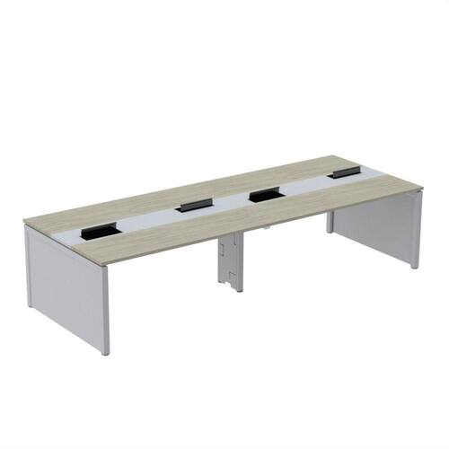 Mesa corporativa para 4 lugares com pé painel adequado para ambientes de coworking. Esse complemento é projetado para ser utilizado em conjunto com outras mesas, permitindo aumentar o número de lugares disponíveis. Ela combina funcionalidade e estilo, proporcionando um espaço colaborativo confortável para trabalhar. Você pode adicionar essa mesa a outras unidades para criar um ambiente expansível conforme necessário.