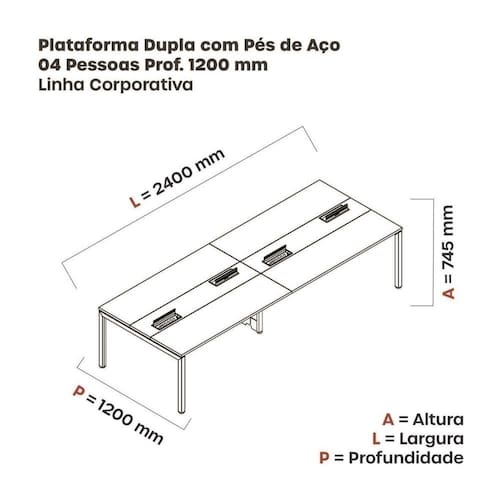 Itens Inclusos: 1 Mesa Plataforma Dupla 4 Lugares