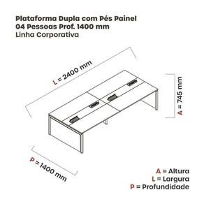 Mesa corporativa para 4 lugares com pé painel adequado para ambientes de coworking. Esse complemento é projetado para ser utilizado em conjunto com outras mesas, permitindo aumentar o número de lugares disponíveis. Ela combina funcionalidade e estilo, proporcionando um espaço colaborativo confortável para trabalhar. Você pode adicionar essa mesa a outras unidades para criar um ambiente expansível conforme necessário. Acompanha Manual de Instalação: Sim Ambiente Principal: Escritório Complexidade da Montagem: Baixa: pode ser montado por uma pessoa sozinha Cor: Branco Cor da Base: Cinza Cor do Produto: Branco Cor do Tampo: Branco Cor Flex: Não Cor Interna: Branco Dobrável: Não Escala de Brilho: Semi-Fosco Espessura do Tampo: 25 mm Formato: Retangular Itens Inclusos: 1 mesa plataforma dupla 2 lugares Linha ou Coleção: Linha Corporativa Manual de Montagem e Instalação: https://product-hub-prd.madeiramadeira.com.br/900617/documents/30ea3ebd-e0ab-4541-bff5-d206266887ff20Dupla200420PC3A920Painel.pdf Material da Estrutura: Aço Material do Tampo: MDP Material dos Pés: Polipropileno Material Principal: MDP Montagem Flex: Não Necessita Montagem: Sim Origem do Produto: Nacional Peso: 86,686 kg Possui Painel: Não Possui Passa Cabos: Não Possui Porta Objetos: Não Possui Portas: Não Possui Prateleiras: Não Possui suporte para CPU: Não Possui Suporte para Teclado: Não Possui Vidro: Não Recomendações de Uso, Manutenção e Limpeza: Utilize pano úmido com para limpeza Sapatas Niveladoras: Sim Sistema de Montagem: Parafuso Suporta Até (kg): 30 kg