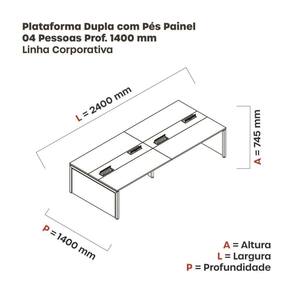 Mesa de Plataforma Dupla para 4 Pessoas Corporativa 120x140/4p Cinza/Preto