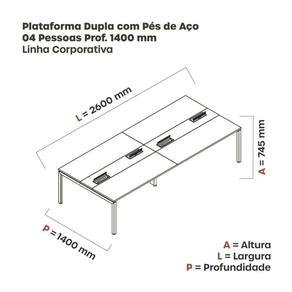 Mesa corporativa para 4 lugares com pé de aço adequado para ambientes de coworking. Esse complemento é projetado para ser utilizado em conjunto com outras mesas, permitindo aumentar o número de lugares disponíveis. Ela combina funcionalidade e estilo, proporcionando um espaço colaborativo confortável para trabalhar. Você pode adicionar essa mesa a outras unidades para criar um ambiente expansível conforme necessário.
