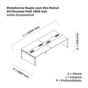 Mesa corporativa para 4 lugares com pé painel adequado para ambientes de coworking. Esse complemento é projetado para ser utilizado em conjunto com outras mesas, permitindo aumentar o número de lugares disponíveis. Ela combina funcionalidade e estilo, proporcionando um espaço colaborativo confortável para trabalhar. Você pode adicionar essa mesa a outras unidades para criar um ambiente expansível conforme necessário. Acompanha Manual de Instalação: Sim Ambiente Principal: Escritório Complexidade da Montagem: Baixa: pode ser montado por uma pessoa sozinha Cor: Noce Naturalle/Grafito Cor da Base: Cinza Cor do Produto: Noce NAturalle/Grafito Cor Flex: Não Cor Interna: Noce NAturalle/Grafito Dobrável: Não Escala de Brilho: Semi-Fosco Espessura do Tampo: 25 mm Formato: Retangular Itens Inclusos: 1 mesa plataforma dupla 2 lugares Linha ou Coleção: Linha Corporativa Manual de Montagem e Instalação: https://product-hub-prd.madeiramadeira.com.br/900631/documents/8d9f97d9-a481-4144-8f16-c94b66d6586020Dupla200420PC3A920Painel.pdf Material da Estrutura: Aço Material do Tampo: MDP Material dos Pés: Polipropileno Material Principal: MDP Montagem Flex: Não Necessita Montagem: Sim Origem do Produto: Nacional Peso: 106,278 kg Possui Painel: Não Possui Passa Cabos: Não Possui Porta Objetos: Não Possui Portas: Não Possui Prateleiras: Não Possui suporte para CPU: Não Possui Suporte para Teclado: Não Possui Vidro: Não Recomendações de Uso, Manutenção e Limpeza: Utilize pano úmido com para limpeza Sapatas Niveladoras: Sim Sistema de Montagem: Parafuso Suporta Até (kg): 30 kg