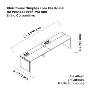 Mesa de Plataforma Simples para 2 Pessoas Corporativa 150x792/2p Pscpp150/792/2p Branco