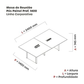 Mesa de Reunião 2400x1400 Mrcpb2414pp Cinza/Branco