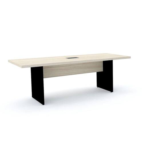 Mesa de Reunião com Caixa de Tomada 200 x 90 cm Pé Painel PE40 em MDP Nogueira CasaBlanca Base Preta - Bege Claro