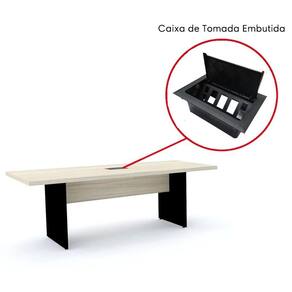 Para oferecer a sensação de bem-estar e conforto nas suas reuniões apresentamos a você a mesa de reunião pé painel com caixa de tomada PE40 em MDP 200 x 90 cm base preta, a peça ideal para seu escritório.