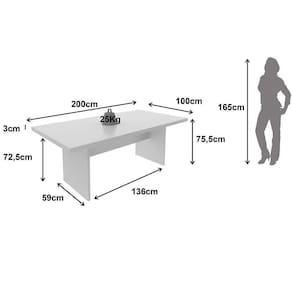 Mesa De Reunião Para Escritório Grande Branco A Mesa de Reunião para Escritório Grande é a escolha ideal para ambientes corporativos que priorizam praticidade e elegância. Seu design moderno proporciona um espaço confortável para acomodar equipes, promovendo reuniões produtivas e bem organizadas. Dimensões da Mesa de Reunião para Escritório Grande: - Altura: 75,5 cm - Largura: 200 cm - Profundidade: 100 cm