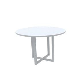 Mesa de Reunião Redonda 110 x 110 cm Pé Tubular PE25 em MDP Branca com Base Branca - Branco
