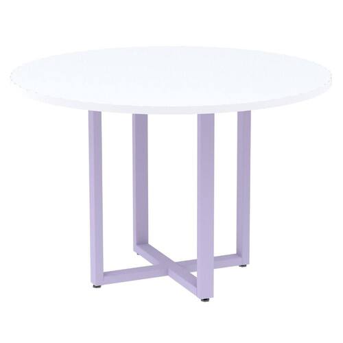 Mesa de Reunião Redonda P25 Pandin 110 cm (Largura) Tampo MDP Branco Pé Aço Tubular Lilás