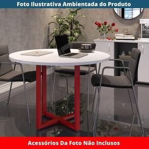 Acabamento: Bordas arredondadas com fita em PVC de 2mm para maior resistência e acabamento refinado. Dimensões: 1100mm (diâmetro) x 25mm (espessura). Cores Disponíveis: Padrão Pandin. Pé Tubular: Estrutura central confeccionada em chapa de aço 18 (1,20mm) com design tubular robusto, medindo 50mm (L) x 30mm (P). Inclui passagem para fios, promovendo organização e funcionalidade.