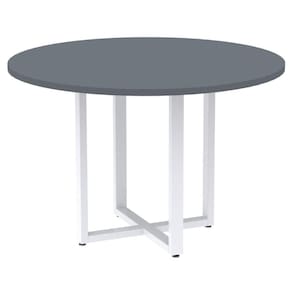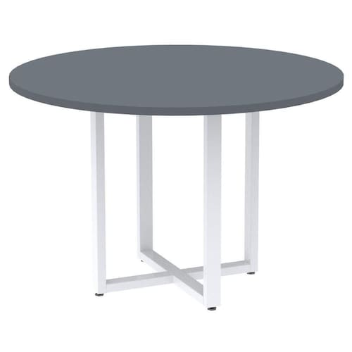 Mesa De Reunião Redonda P25 Pandin 110 Cm (largura) Tampo Mdp Grafito Pé Aço Tubular Branco