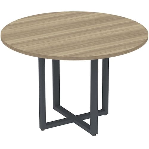 Mesa de Reunião Redonda P25 Pandin 110 cm (Largura) Tampo MDP Noce Naturalle Pé Aço Tubular Cinza - Marrom