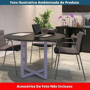 Mesa De Reunião Redonda P25 Pandin 110 Cm (largura) Tampo Mdp Preto Pé Aço Tubular Lilás A Mesa de Reunião Redonda é a escolha perfeita para espaços corporativos e colaborativos que buscam sofisticação, durabilidade e funcionalidade. Seu design elegante e compacto é ideal para fomentar a interação entre equipes e agregar valor ao ambiente de trabalho. Características do Produto: