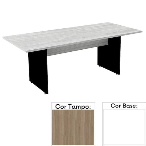Mesa de Reunião Retangular 200 x 90 cm Pé Painel PE25 em MDP Cor Noce Naturalle e Base Branca - Marrom