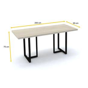 DETALHES DO PRODUTO- Mesa de reunião retangular, com tampo de madeira (MDP) e base tubular com pés niveladores.