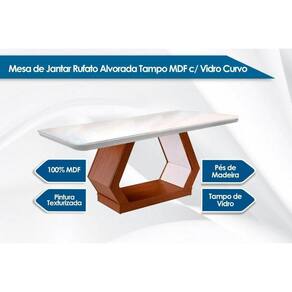 Mesa de Sala Jantar Alvorada c/Tampo Madeirado Vidro Canto Curvo 180x90cm Imbuia/Grafite - Rufato