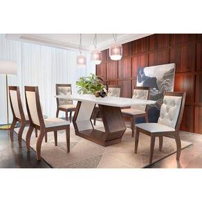 Mesa de Sala Jantar Alvorada + Tampo Madeirado Curvo 180x90cm Imbuia/Off White - Rufato