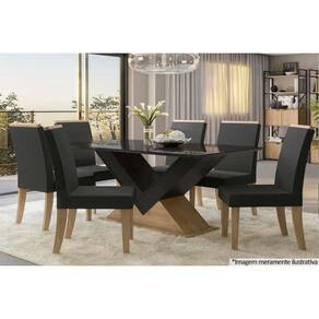 Abaixo segue os produtos do KIT: Mesa de Sala Jantar Amora + Tampo Madeirado c/ Vidro 160x90cm Freijó/Bronze - Kappesberg