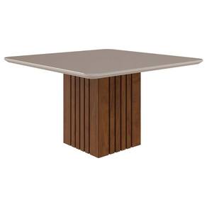 Mesa de Sala Jantar Ana c/Tampo Madeirado Vidro 130x130cm Savana c/ Off White - Cimol