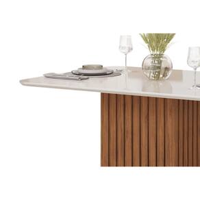Mesa de Sala Jantar Canes c/ Tampo Madeirado c/ Vidro Curvo 120x90cm Freijo/Off White - DJ Móveis