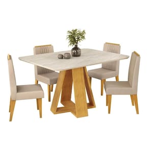 Mesa de Sala Jantar Celeste Tampo Madeirado Curvo 120X90 Cedro/Quartzo - DJ Móveis