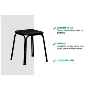 Dimensões(Cm): Comnto(Profundidade): 47,3cm x Largura: 47,3cm x Altura: 60cm Material de Estrutura - MDP/Aço Tipo de Pintura - UV Tipo de Acabamento da Pintura - Pintura Semi Brilho Forração do Revestimento - Couríssimo Tipo do Assento - Estofado