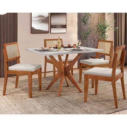 Mesa de Sala Jantar Donna c/ Tampo Madeirado c/ Vidro 120cm + 4 Cadeiras Rainha Natural - Nesher