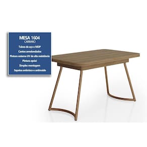 Mesa de Sala Jantar Évora Menor 1604 c/ Tampo Madeirado c/ Vidro 130x80cm Dourado/Noce/Carvalho - Carraro Marca: Carraro