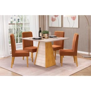 Mesa de Sala Jantar Fler c/Tampo Madeirado Vidro 90x90cm Cedro/Off White/Off White - DJ Móveis