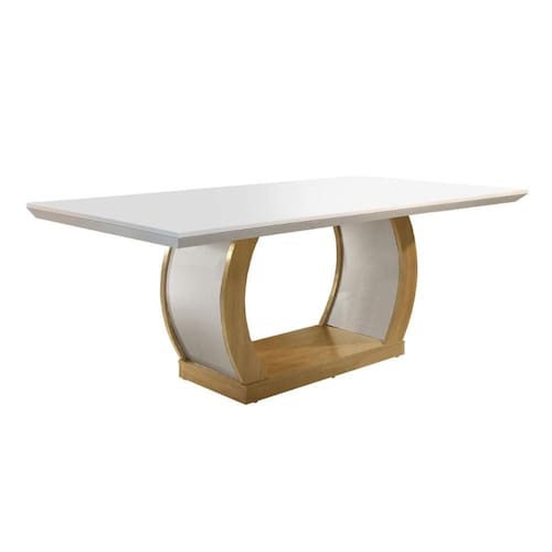 Mesa de Sala Jantar Jade c/ Tampo180x90cm Madeirado Vidro Canto Curvo - Imbuia/Off White - Rufato