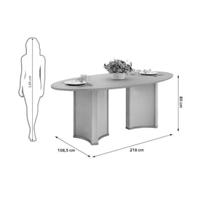 Mesa de Sala Jantar Liz c/ Tampo Madeirado c/ Vidro Oval 218x108cm Off White/Off White - DJ Móveis