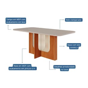 Mesa de Sala Jantar Louise c/Tampo Madeirado Vidro 180x90cm Cinamomo/Off White - Cimol