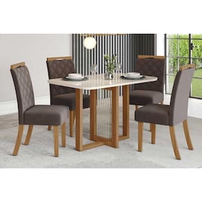 Mesa de Sala Jantar Natalí SC73 + Tampo Madeirado Vidro Curvo 120x80cm Nature/Off White - Henn