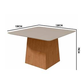 Mesa de Sala Jantar Nevada c/ Tampo Madeirado Canto Curvo 130x130cm Amendoa/Off White - Lopas