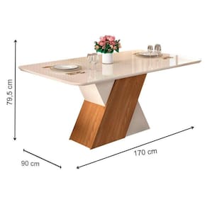 Mesa de Sala Jantar Rubi + Tampo Madeirado Vidro 170x90cm Freijó/Off White/Off White - DJ Móveis