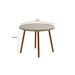 Espessura da Estrutura do Tampo - 40 Tipo de Formato Tampo da Mesa - Tampo Redondo Tipo das Quinas do Tampo da Mesa - Bordas Arredondadas Tipo dos Pés - Pés em Aço