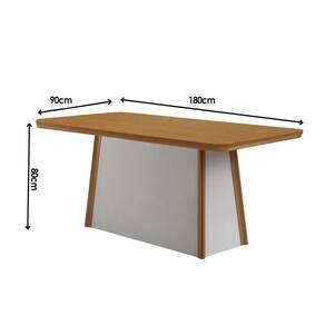Mesa de Sala Jantar Tília c/ Tampo Madeirado c/ Canto Curvo 180X90cm Off White/Naturale/Naturale - Rufato