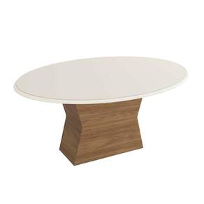 Mesa de Sala Jantar Tília c/Tampo Madeirado c/ Vidro 105x180cm Nogueira/Off White/Vidro Off White - Kappesberg