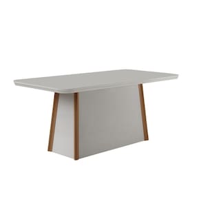 Mesa de Sala Jantar Tília c/ Tampo Madeirado c/ Vidro Canto Curvo 180X90cm Off White/Naturale/Off White - Rufato