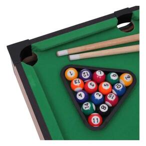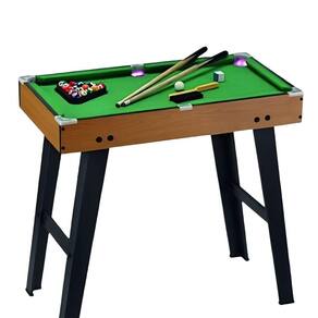Ideal para quem gosta de reunir família e amigos, a mesa oferece campo de jogo amplo, superfície nivelada e feltro de cor vibrante, proporcionando deslize suave e visual atraente. Os acessórios acompanham o conjunto: tacos com empunhadura confortável, conjunto de bolas devidamente numeradas, triângulo, giz e possivelmente escova de limpeza do feltro.