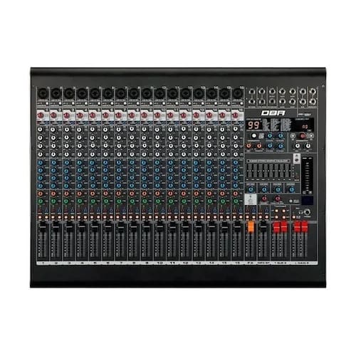 Mesa De Som Dbr Dm-16 Usb Com 16 Canais Com Efeito Descrição O Mixer DM16 da DBR foi especialmente projetado para atender a uma grande gama de utilizações, proporcionando desempenho superior, qualidade de som e confiabilidade, com o melhor custo benefício. 99 presets de efeitos personalizáveis O processador FX possui os principais tipos de efeito do mercado, sendo estes: Reverbs, Delays, Chorus, Flanger e Phaser, e ainda possui uma vasta combinação destes proporcionando 99 presets de efeito que podem ser ajustados para personalizar a sua mixagem. Compatibilidade total com PC Suas diversas possibilidades de conexão foram projetadas para máxima compatibilidade com o seu sistema de som, a interface USB/PC possibilita mixagem e gravação de qualidade com total integração e controles específicos, utilizando o seu computador. 12 entradas combo XLR/P10 com ajuste individual Além disso, o DM16 possui 16 entradas XLR combo, conexão Bluetooth, saída P10, e 4 saídas auxiliares para conectar seu fone ou caixa para retorno, possibilitando ouvir cada canal separadamente, com controles de nível separados para as saídas de alto-falante e fone de ouvido. Conexão Power +48V O mixer também conta com entradas e saídas dedicadas a conexão de sistemas paralelos, como subwoofers, sistemas amplificados, e dispositivos MP3 com total controle de equalização e volume. Também está incluído na mesa, uma conexão Power +48V para alimentação de microfones condensadores. Em busca de mais agilidade em sua mixagem, o DM16 possui indicadores luminosos em todos os seus controles. E sua carcaça em metal reforçado garante a durabilidade que você precisa para o dia-a-dia. Especificações Técnicas: - Código: 009626 - Modelo: DM16 - Canais: 16 - Interface USB/PC Estéreo in/out - Entradas: 16 x XLR-1/4 combo - Saídas: 4 x Aux - Aux Sends: 4 - Headphones: 1 - USB: 1 - Bluetooth: Sim - Equalizador gráfico de 9 bandas - 99 DSPs - Efeitos: Phasing, Chorus e Flanging Homologação Anatel: 010130201064