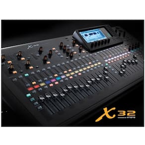 A X32 conta com 32 preamps de microfone programáveis MIDAS e 16 saídas XLR balanceadas, mais saídas de Control Room balanceadas (XLR e TRS ¼"), 6 entradas/saídas de linha adicionais balanceadas (TRS ¼"), duas saídas para fones e seção Talkback com microfone integrado ou externo. A seção LCR principal mais 16 grupos de mixagem com Inserts, EQ paramétrico de 6 bandas e processamento dinâmico podem ser configurados como sub-grupo. Adicionalmente, 6 grupos de mixagem principal com Inserts, EQ de 6 bandas e dinâmica, 6 Grupos de MUTE e 8 Grupos DCA num total de 25 potenciômetros motorizados de 100mm totalmente dedicados. O rack interno virtual de efeitos com 8 slots estéreo e algoritmos de ponto flutuante, tela LCD colorida em cada canal, pontos de Insert e processamento completo em todos os canais, delays de linha ajustáveis, gerenciamento de cenas, conexão USB para gravações não comprimidas, duas portas AES50 (48 canais cada), Ultranet, AES/EBU, MIDI e portas Ethernet/USB para controle remoto completam este console profissional completo.