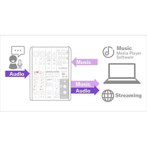 - Entradas flexíveis e função LOOPBACK específica para streaming ao vivo ou gravação