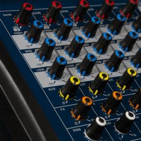 A mesa tem saída L/R para caixa de som, saída para fone, aux send e return. O controle dos 16 efeitos DSP é feito através de seletor de efeitos, equalizador gráfico e fader de volume específico.