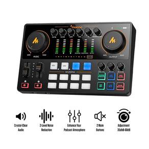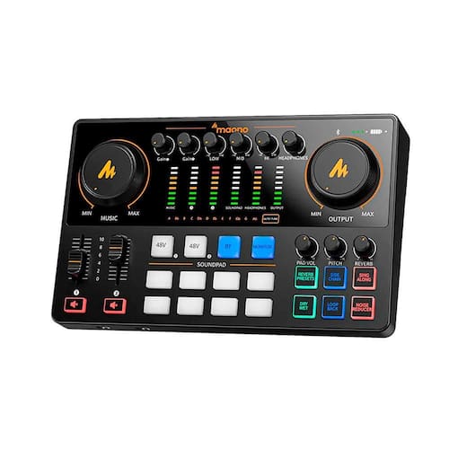 Mesa de Som Maono Caster E2 Gen 2 RGB Bluetooth Stream Deck Preto Até 11 pads de som personalizáveis para melhorar a atmosfera do seu podcast. Amplamente compatível com a maioria dos microfones do mercado, incluindo microfones condensadores/dinâmicos XLR, microfones dinâmicos de 6,35 mm e microfones de 3,5 mm. Equipado com 6 modos de reverb, permitindo ajustar livremente o tempo e a profundidade do efeito. Especialmente desenvolvido para podcasting, transmissões e criação de conteúdo. O modelo oferece recursos essenciais como botão de mute rápido, função Loopback para transmissões e monitoração em tempo real. A bateria interna de 1500 mAh garante até 8 horas de uso contínuo. O E2 Gen2 também inclui efeitos de alteração de voz e seis tipos de reverb para criar diferentes ambientes sonoros. Para maior flexibilidade, aceita conexões via Bluetooth, AUX-IN, USB-C e permite saída direta para celulares e computadores. Especificações: Transmissão de Dados: USB-C Resposta de Frequência: 20Hz-20kHz Thd: THD Potência de Saída para Headset: 20mW, 32O 1kHz, THD+N = 1% Taxa de Amostragem: 48kHz / 16bit Conexão Sem Fio: Bluetooth 4.2 Capacidade da Bateria: 2000mAh Parâmetro de Carregamento: 5V / 1A Tempo de Carga: Aprox. 3h Duração da Bateria: Aprox. 8h com brilho máximo dos botões Homologação Anatel: 149822010251 Marca: Não Informado