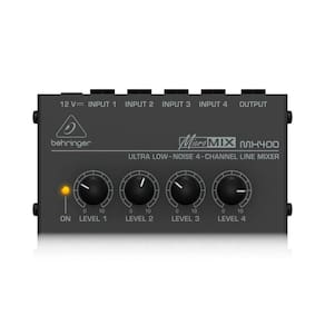 Apesar de seu tamanho ultra compacto, este mixer de 4 canais em linha é grande em recursos Ele mantém a mais alta qualidade sonora em todos os níveis de saída, possuindo amplificadores operacionais 4580 de ultra baixo ruído para performance de audio excepcional - os mesmos amplificadores operacionais utilizados em seus 'irmãos' muito maiores. Expandindo nas capacidades de mixer de tamanhos comuns é onde o MX400 se sobressai, por exemplo como um sub-mixer. Se você está com poucos canais disponíveis em seu mixer grande e precisa trazer a saída de três diferentes teclados para seu mix, você pode simplesmente conectá-los à saída do MX400 para uma única entrada do seu mixer principal.