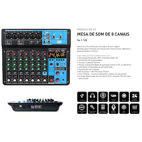 MESA DE SOM MIXER 8 CANAIS COM PHANTOM POWER